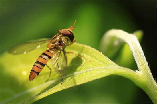 食蚜蝇其实是很常见的,但是因为她的外形十分形似蜜蜂,所以很多人会将其当成蜜蜂。食蚜蝇的成虫十分轻盈,以采食花蜜为生,但是它的幼虫和蛆很像,总是在叶片上面蠕动,很多人会将其当成害虫,但是实际上它们是靠吃蚜虫之类的害虫存活的。