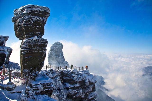 梵净山,位于贵州铜仁市的印江自治县、江口县、松桃自治县交界处,距省会贵阳460公里。为武陵山脉主峰,海拔2494米。原始生态保存完好,1982年被联合国列为一级世界生态保护区。梵净山拥有丰富的野生动植物资源,比如黔金丝猴、珙桐等珍稀物种。风景美丽自然,进入山区完全找不着人工景色的痕迹,其主峰的“蘑菇石”是著名的一道景观,是旅游不可多得的一个地方。#各地多措并举应对寒潮保供电 守护万家“烟火气”#