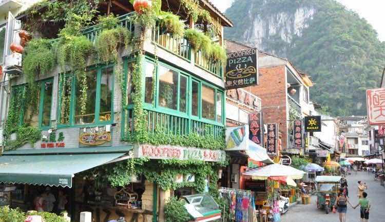 阳朔西街又被戏称洋人街。不到1公里的阳朔西街,由石板砌成,呈弯曲的S形。街上摆满了各种旅游纪念品。西街是外国人在中国最密集的一条街,每年来这里居住休闲游的外国人相当于这里常住人口的三倍。西街是全中国最大的外语角,其涉外婚姻比例之高为全中国之最。为此,旅游界专家、学者称之为“中国旅游业中的阳朔现象”,中国的“地球村”。这种现象引起中国人的关注,世界的关注。其充满了异国情调的夜景更是风情万种。
