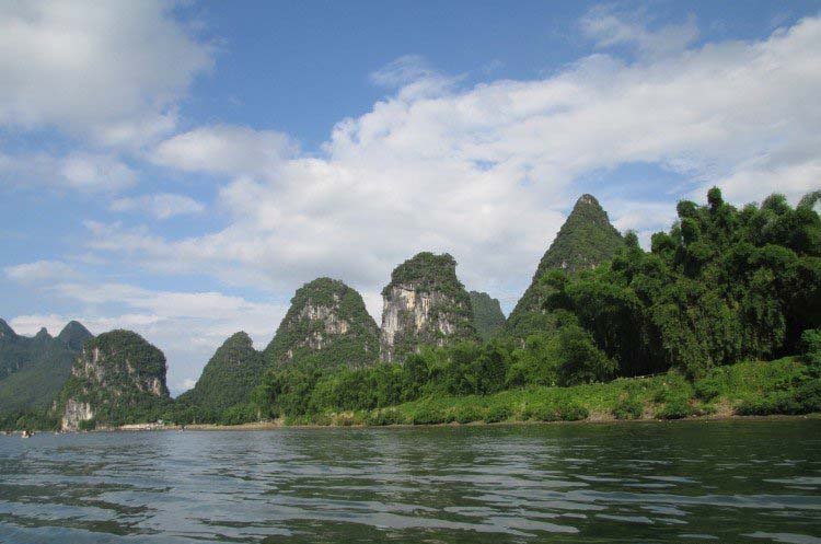 桂林的山,平地拔起,千姿百态;漓江的水,蜿蜒曲折,明洁如镜;山多有洞,洞幽景奇;洞中怪石,鬼斧神工,琳琅满目,于是形成了“山青、水秀、洞奇、石美”的桂林“四绝”,而自古就有“桂林山水甲天下”的赞誉。