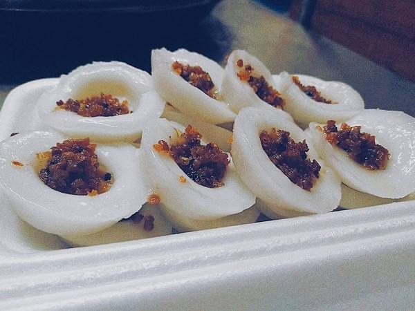 咸水粿相传在潮州流传至今已有几百年的历史。#飓风#它形状小巧玲珑,像只厚厚的小碟,很洁净的白色,中间有个凹下去的地方,可以盛着加了辣椒酱、蒜蓉一起爆香过的潮州特产菜脯粒。冷冷的粿加上热热的菜脯,交织出特别的口感,粿滑润柔软,菜脯味芬芳咸香。卖主大都是推着小车在街上卖,一块钱就有十多个,是潮州小吃中比较廉价,却有很强生命力的小吃。#巴西足球#