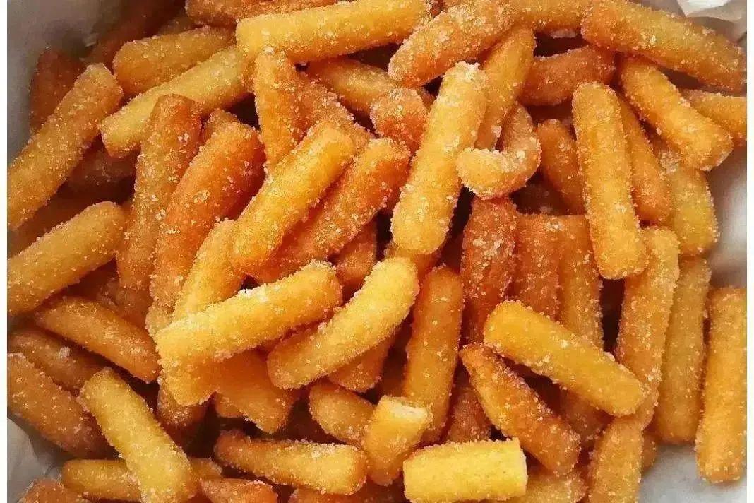 用糯米面加上豆粉和麦芽糖水制作而成,搓成长长的圆条,放到油锅中炸熟。最后再裹上白糖,吃起来香香脆脆的,回味还甜滋滋的。