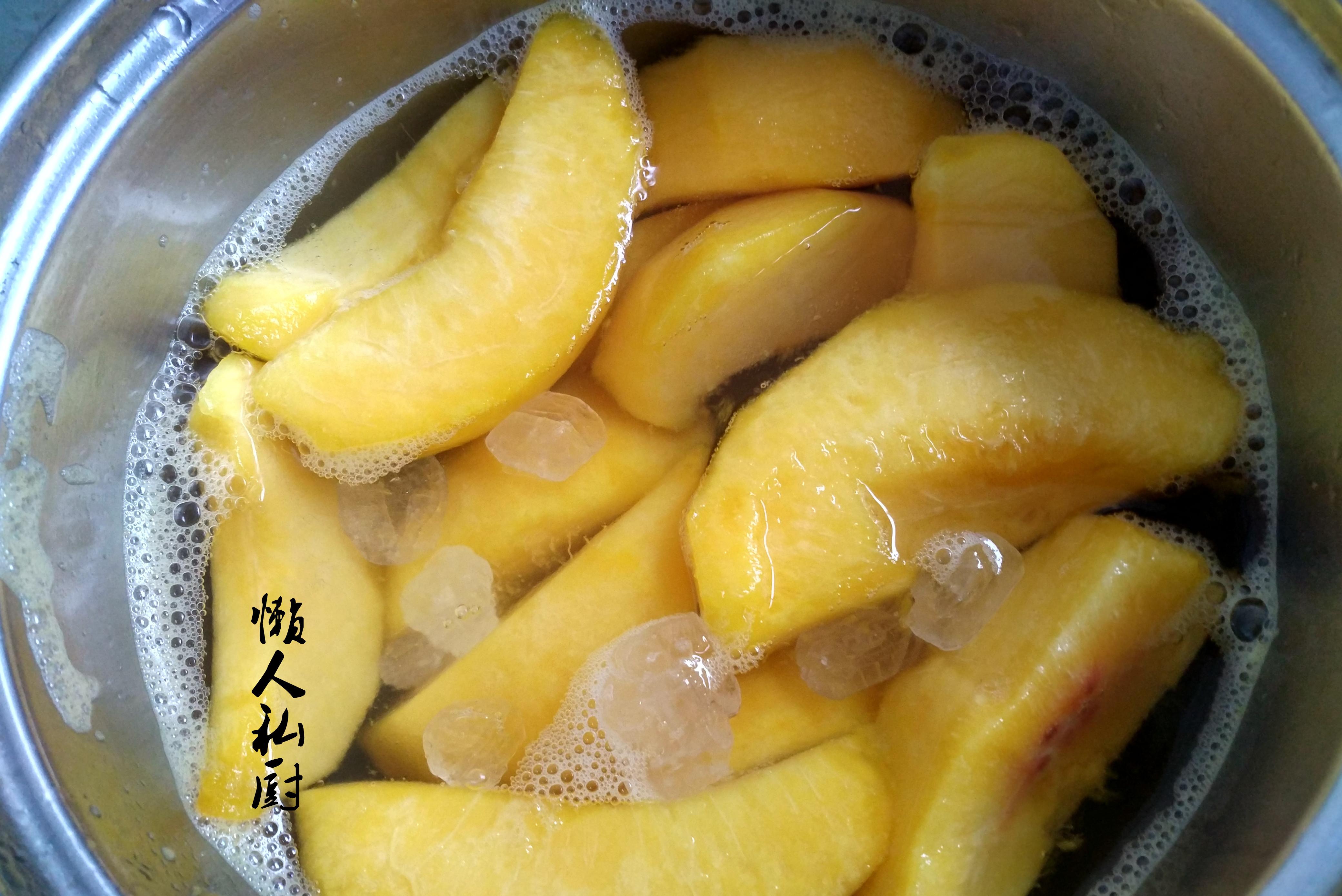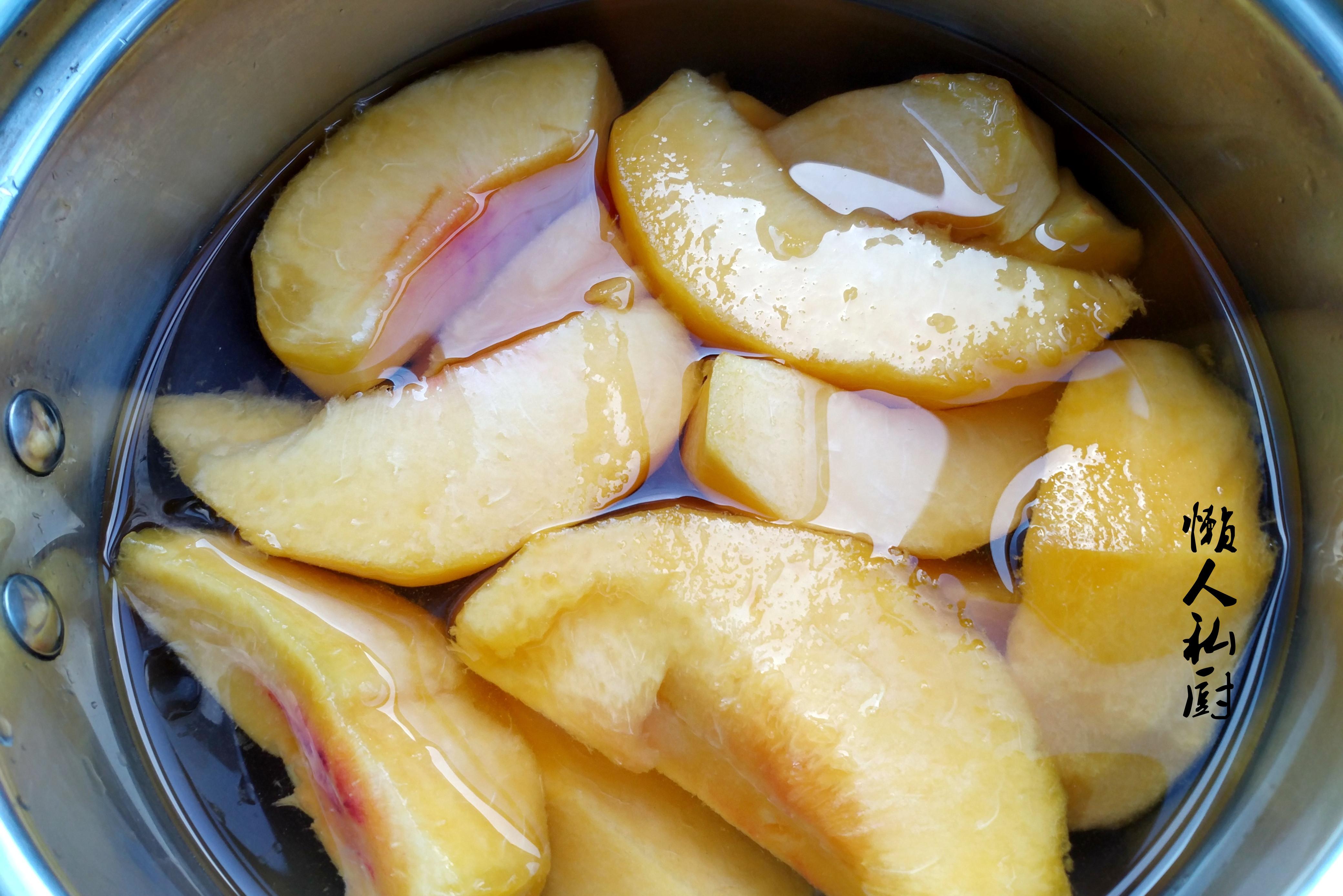 (黄桃的挑选:做罐头的黄桃最好是硬一点的鲜桃,太熟的桃子容易煮烂。由于制作起来很容易,我每次都没有做那么多,吃完了再做感觉会更新鲜)