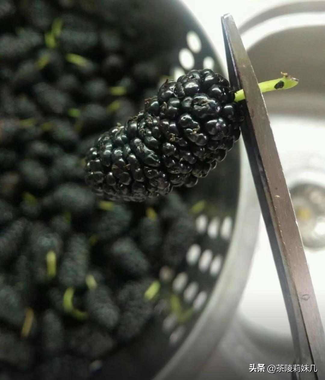 1:将新鲜采摘回来的桑葚,简单进行挑拣下。成熟的桑葚酸甜可口,以个大、肉厚、色紫红、糖分足者为佳,尽量挑选饱满丰盈的,泡出来的果酒效果更好。