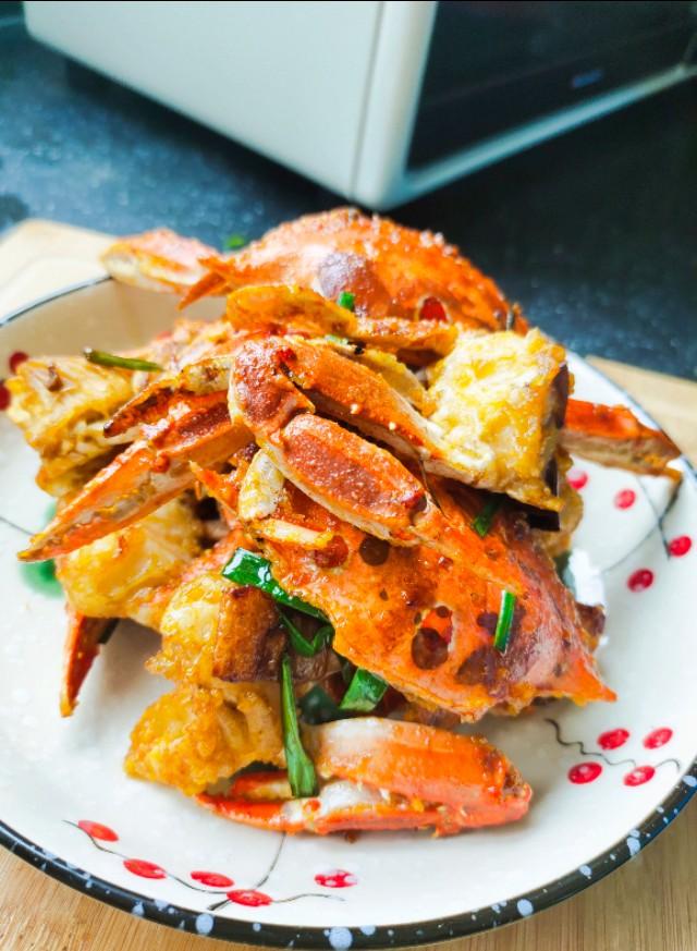 加入了吉士粉的姜葱炒花蟹,在没吃完以后二次加热,也还是味道香浓。添加了吉士粉的花蟹在油炸过程中也会有更鲜亮的成色。但如果家里没有吉士粉,也可以用生粉或者面粉代替,可有效祛除腥味哦。
