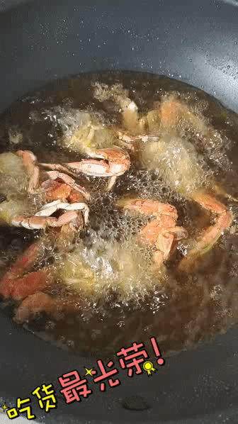 3. 热锅倒入约半锅油,视花蟹的分量自行调节,以油没过一半以上的花蟹为佳。如果家里没有烹饪温度计的朋友,可以拿一个筷子竖放入锅底,筷子周围会有小泡泡包裹冒起可放入花蟹。炸2分钟左右,捞出沥油备用;