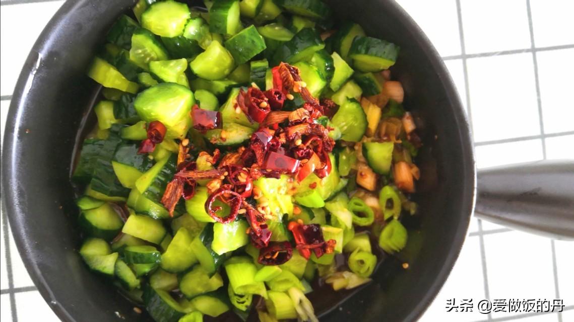 我会把黄瓜切成小一点的块,再切点葱花放进去,拌上我自制的辣椒油,别提多好吃啦。