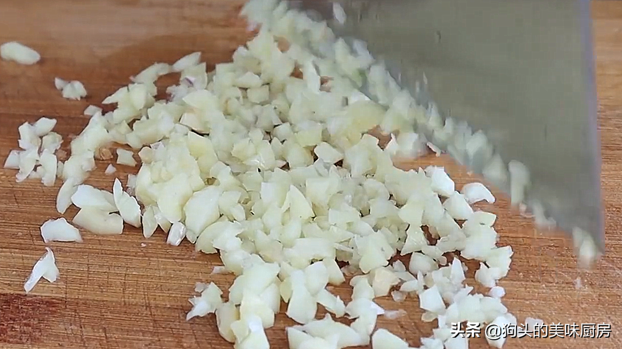 6.再拍点大蒜末去腥增香。剁成碎末备用。