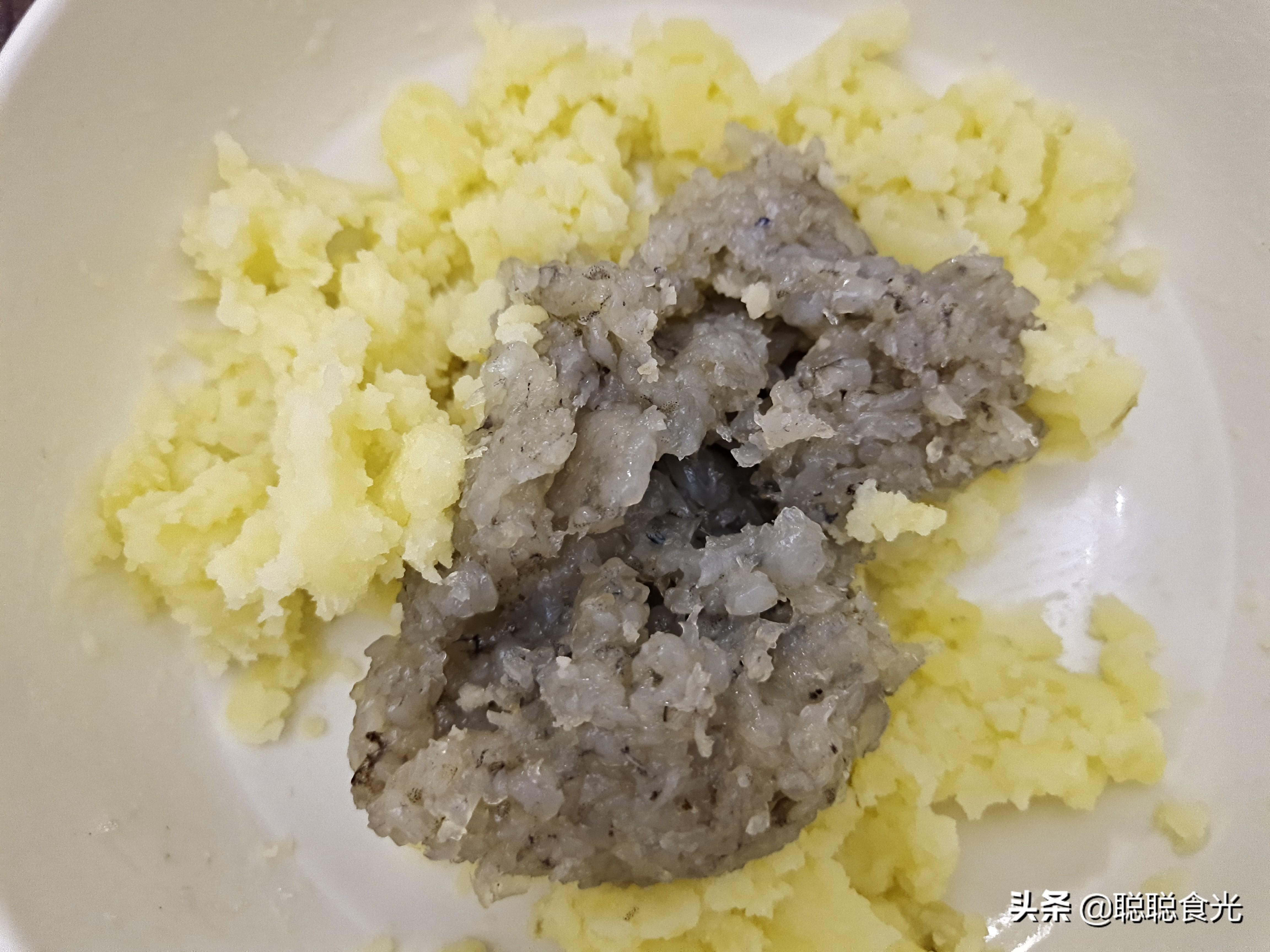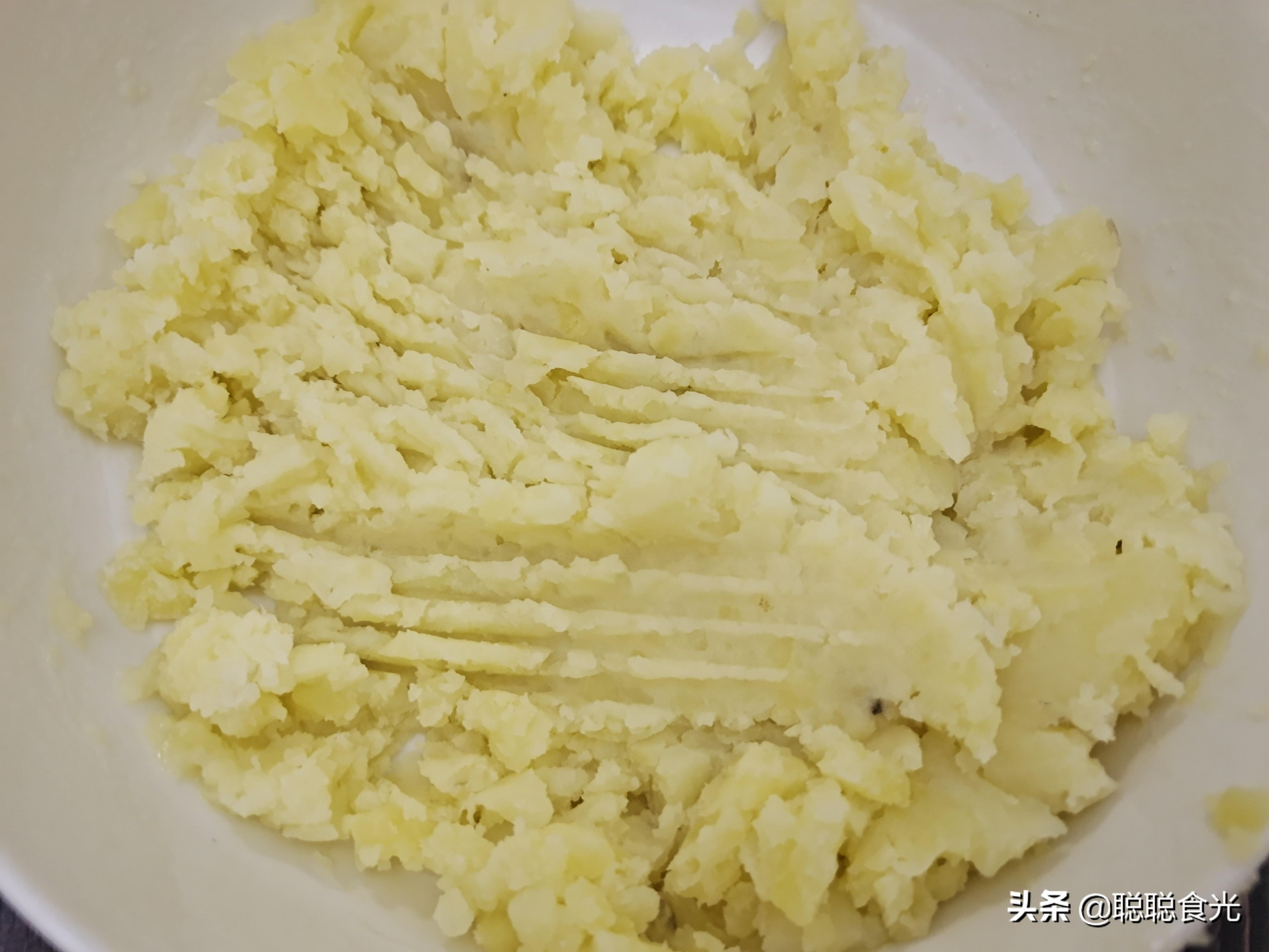 2、土豆泥一定要趁热的时候制作,凉了土豆会反生,压成泥会有结块。