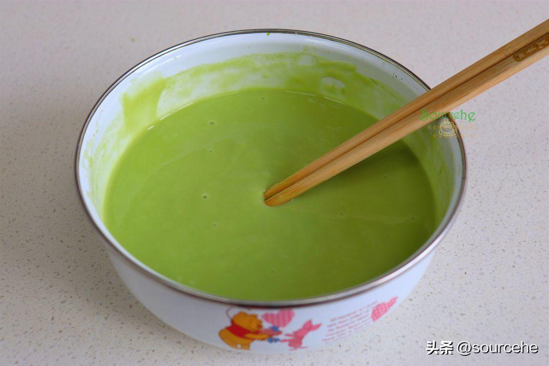 步骤1: 把水晶糕粉倒入一个大盘子,加入抹茶粉,搅拌均匀。接着一边加水一边搅拌,水要分几次加入搅拌。搅拌至没有颗粒状,浆糊就好了。