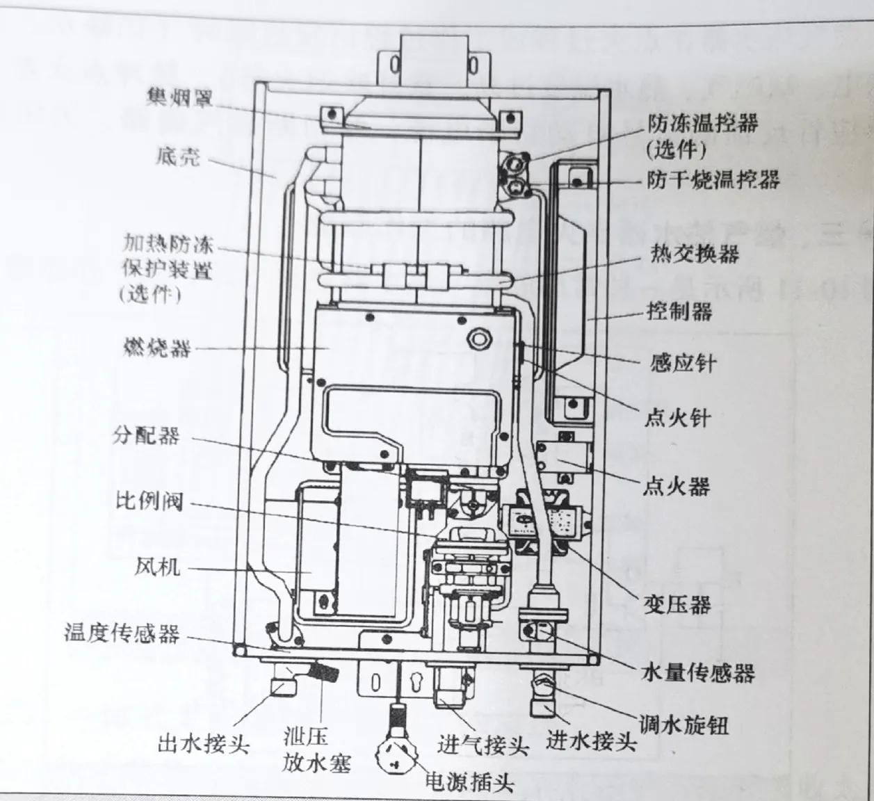 (强排式热水器内部结构)
