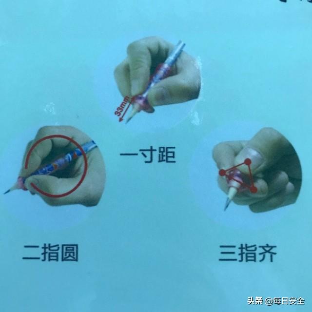 拇指在左,食指在右,中指第一指节(指甲盖与肉相连处)在内上托,以取得平衡,无名指与小指紧靠中指后面。