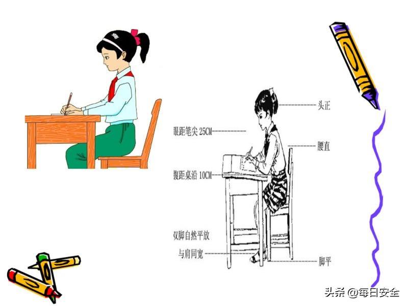 正确的写字姿 头正 头部端正,自然前倾,眼睛离桌面约一尺距离。