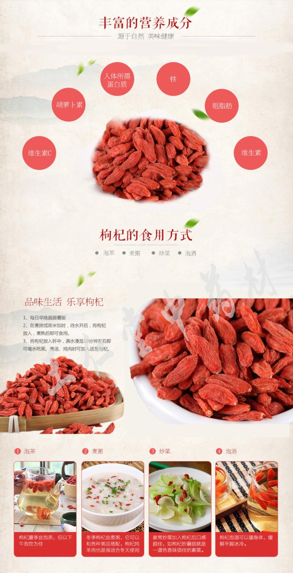 枸杞为扶正固本,生精补髓、滋阴补肾、益气安神、强身健体、延缓衰老之良药,自古以来就是滋补强壮养人的上品,有效地增强各种脏腑功能,能改善大脑功能和对抗自由基的功能,具有明显的延缓衰老的作用。